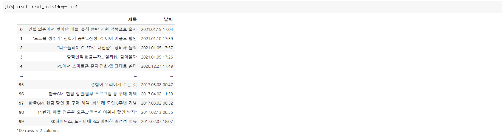 예를 들면 다음과 같은 경우이다. 전체 데이터 100개를 한번에 보고 싶지만 중간에 보면 생략되어서 출력이 되고 있다.