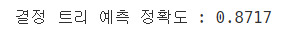 print('결정 트리 예측 정확도 : {0:.4f}'.format(accuracy))